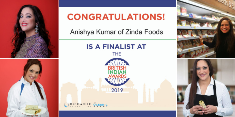 We are very pleased to announce that our founder of Zinda Foods, Anishya Kumar, has reached the finals in the Businesswoman of the Year at The 7th British Indian Awards. Anishya reached the finals through nominations from the public – which is a great honour.